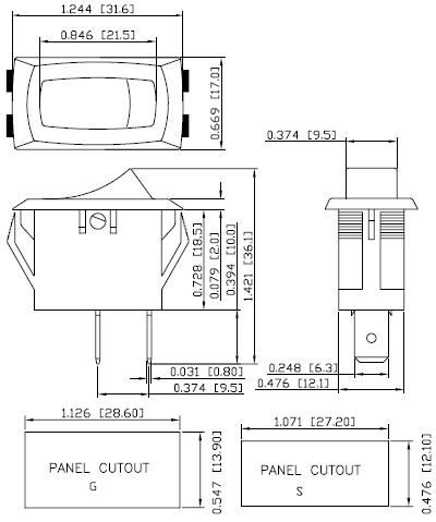 into the industry standard panel cut-out: 0.476 x 1.071" (12.10 x 27.20mm) or 0.547 x 1.126" ( 13.90 x 28.60mm).
