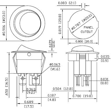 into panel hole: 0.787" (20.0mm). The switch is DPST On.Off, and has illumination in red , green , amber and other colors. PVC