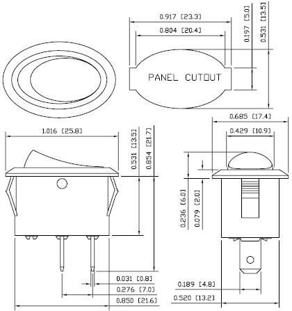 into panel cut-out: 0.531 x .917" (13.50 x 23.30mm).