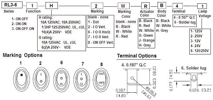 SPST, ON OFF, 16A 125VAC, black body/actuator, white I O marking, 0.187" Q.C |
