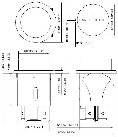 into the panel hole size: 0.984" (25.0mm). The switch has SP and DP with On.Off or (On).Off function, also available in illumination
